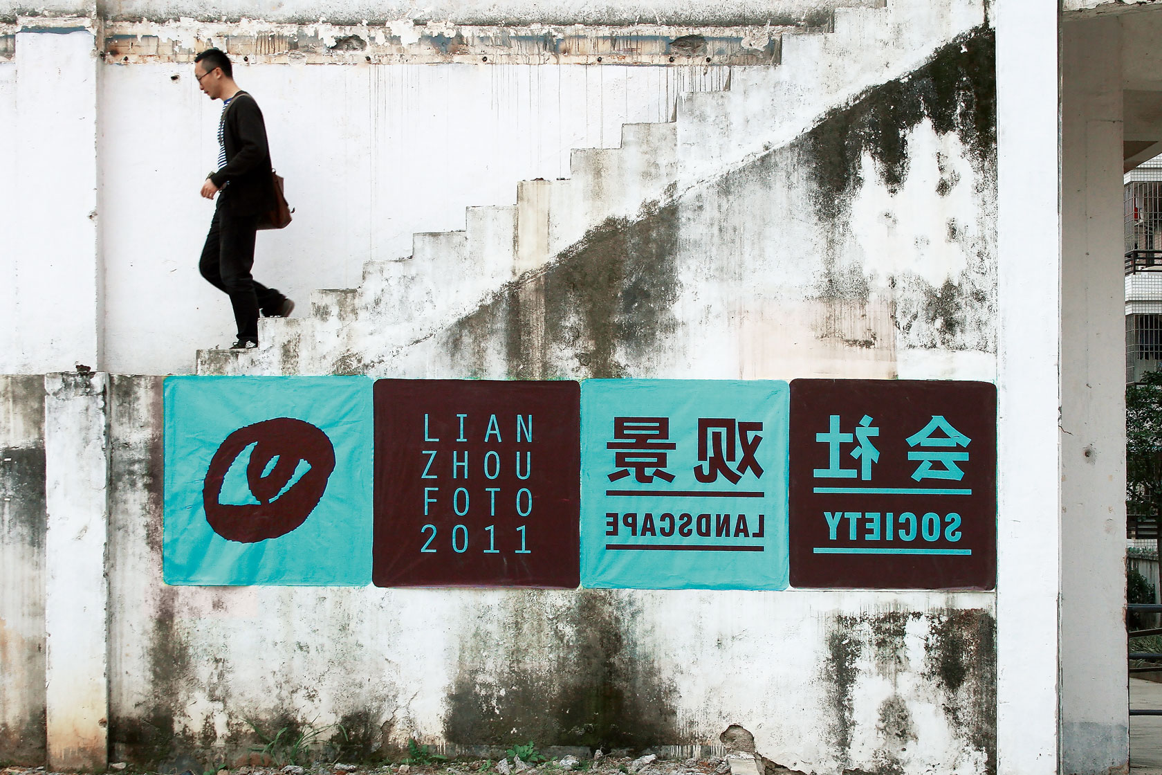 Mirrored typography interprets the 2011 Lianzhou International Photography Festival theme "Toward Social Landscape," inviting viewers to contemplate relationships between "society" and "landscape" through deciphering – mirroring the viewer-exhibit dynamic. The restrained, intellectual design aligns with the event’s academic depth.
