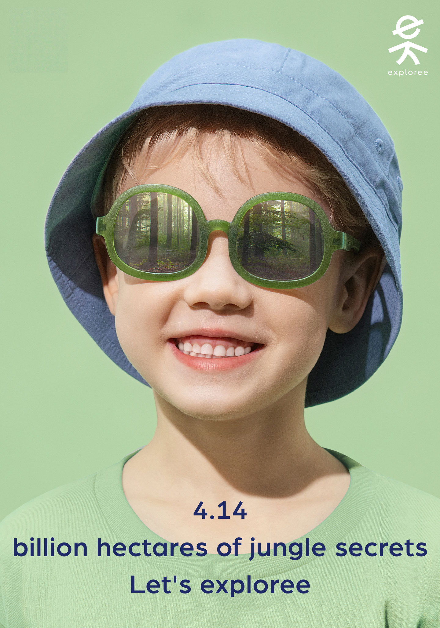 As a children's eyewear brand, Exploree is positioned as an applauder and companion for children's imagination and mobility. The letter “e”, the initial of the brand name, evolves into an image of an excited, cheerful kid explorer, which advocates the brand’s idea of encouraging children to go outside and explore a bigger world. Driller Doing Communications provides systematic services for Exploree, including brand strategy, product strategy, series product design and guidance, logo design, visual identity design, packaging design, advertising design, brochure design, website design, exhibition venue design, photography, and more.